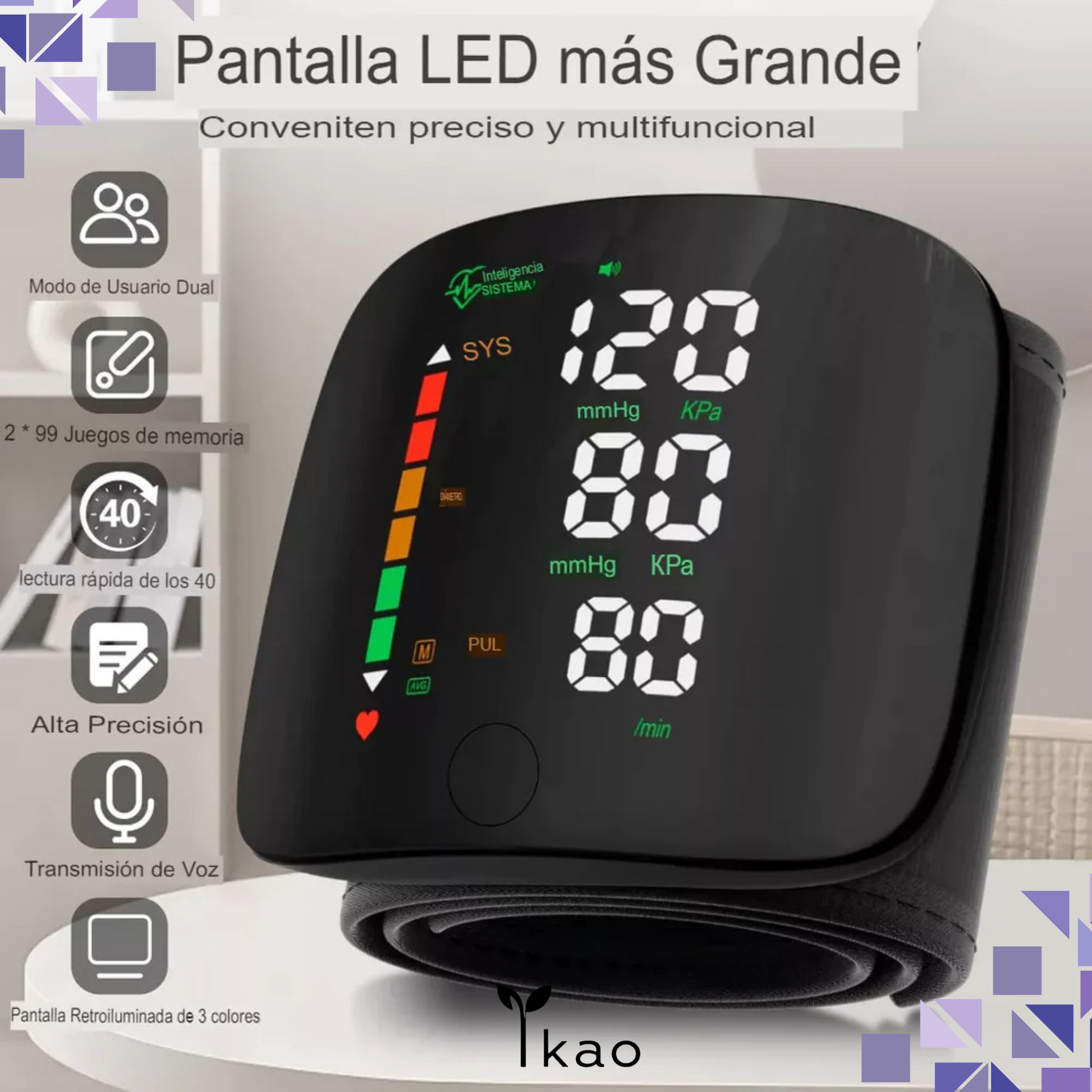 Solo ajusta el brazalete, presiona un botón y tendrás el resultado en segundos. ¡Sin cables, sin complicaciones!